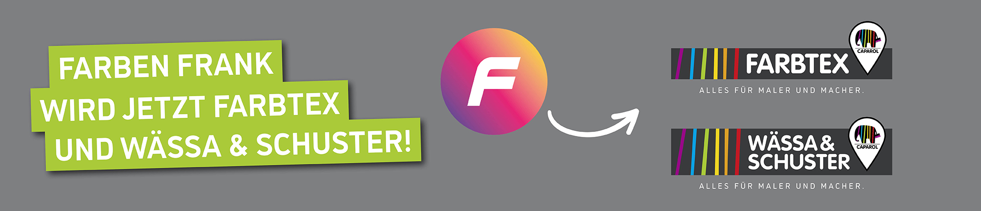 Das Team von Farben Frank finden Sie zukünftig unter den etablierten Namen farbtex und Wässa & Schuster. Beide Firmen gehören zur starken CMS-Gruppe mit über 180 Niederlassungen bundesweit.